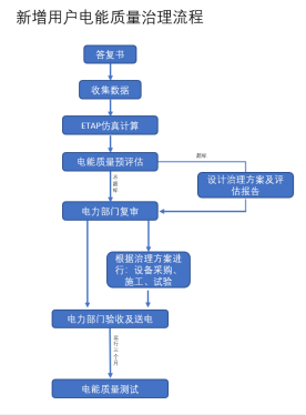 針對(duì)于對(duì)企業(yè)新建項(xiàng)目的用電接入造成配電系統(tǒng)的影響,電力公司進(jìn)一步提出電能質(zhì)量的相關(guān)要求要求,根據(jù)電網(wǎng)相關(guān)規(guī)定,非線性用戶接入電網(wǎng)(業(yè)務(wù)擴(kuò)報(bào)裝階段)需用戶委托有資質(zhì)的單位開展接入系統(tǒng)設(shè)計(jì)及電能質(zhì)量預(yù)測(cè)評(píng)估分析。