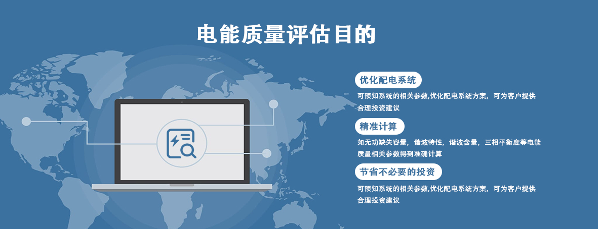 電能質(zhì)量評(píng)估是指對(duì)用戶的用電環(huán)境進(jìn)行評(píng)估,包括電壓質(zhì)量、電流質(zhì)量、供電質(zhì)量、用電質(zhì)量等等很多方面,主要參數(shù)有,電壓、電流、頻率、功率、諧波、閃變等等。